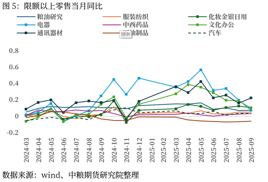 梳理上述数据,不难发现CPI连续走强,主要贡献项是金饰品价格的大幅抬升,同时纺织、医药等权重项处于持续回暖的趋势,处于量价齐升的态势。但是诸如家电、文化办公、通讯器材等内需权重项目,销售增速在下半年国补退坡后开始滑落,与财政补贴的节奏高度吻合,上述商品价格弹性较大,可能意味着三四季度这类产品价格的抬升代表国补的退坡,不一定代表行业更加景气。特别绝对权重项汽车零售,10%以上的销量增速,仅带动4%左右的零售总额的增长,可见消费者对于汽车的财政补贴与车价更为敏感。这代表尚未有足够证据显示大件消费开始趋势回暖。