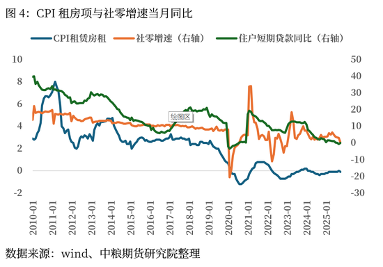 如果观察对应的社会零售增速,四季度又呈现承压状态,是否具备持续性,历史经验表明需要看到租房项与居民短期贷款意愿的持续回暖。房租、短期贷款与收入呈现明显的正相关,是收入到需求传递的链条。当前国内高质量转型过程中,由于全社会对房地产预期的转变,导致租房与短期贷款增速持续趋弱。历史上当租房与居民短期贷款承压时,社零增速所代表的实物需求,很难在长期背离上行。